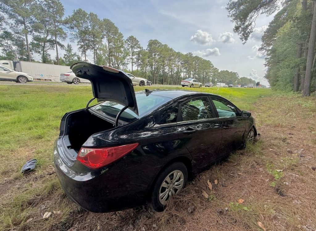 Another deputy was able to deploy stop sticks on I-95 near the 94-mile marker, between US 70 and Brogden Road. The suspect’s vehicle struck the stop sticks and traveled off the interstate to the right.