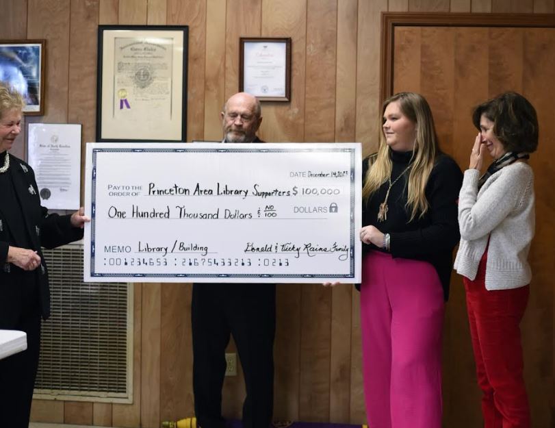 PRINCETON – Don and Vicky Rains recently donated $100,000 to the Princeton Public Library and construction of the new Community Center in Princeton. While making the generous donation, Mr. Rains…