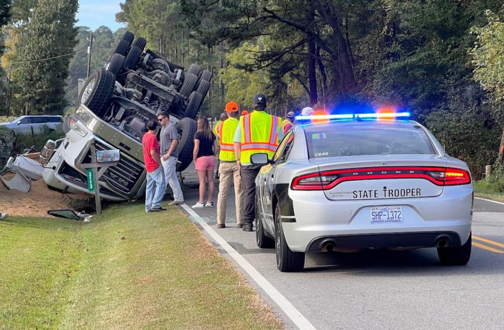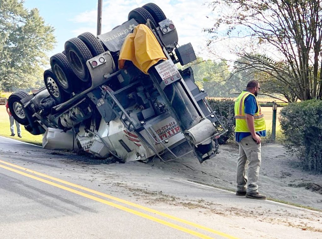 SMITHFIELD – A concrete truck overturned Tuesday morning in the 3100 block of Creech’s Mill Road, east of Smithfield. The accident occurred around 8:30 a.m.