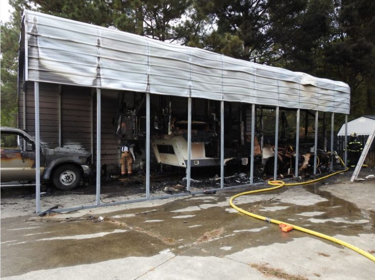 CLAYTON – Firefighters rescued a dog from an RV and house fire this afternoon. Around 3:30pm, crews responded to a report of an RV on fire under a shelter next…