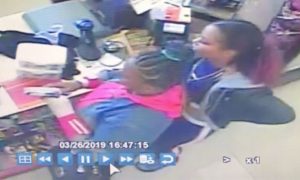 The suspects presented counterfeit $100 bills as payment for items at the Food Lion, Family Dollar and Big Lots on S. Pollock Street. Both suspects are described as young black females. One of the women has a red cast on her left arm.