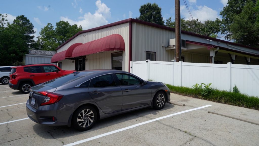 Visitors to the temporary location can park in the marked spots located at the front of the building or utilize the nearby public parking lot.