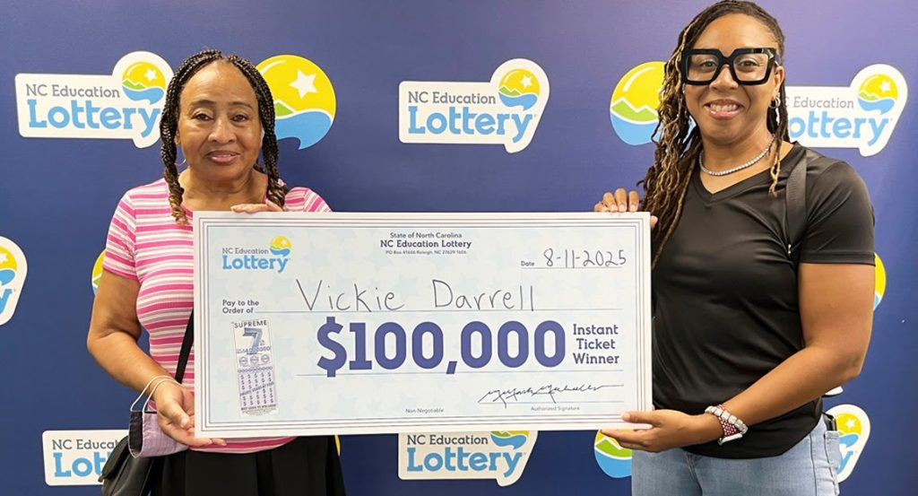 DUNN – After Vickie Darrell of Dunn bought a $30 scratch-off on Saturday she went home, called her daughter and, while speaking to her on the phone, uncovered a $100,000 prize.