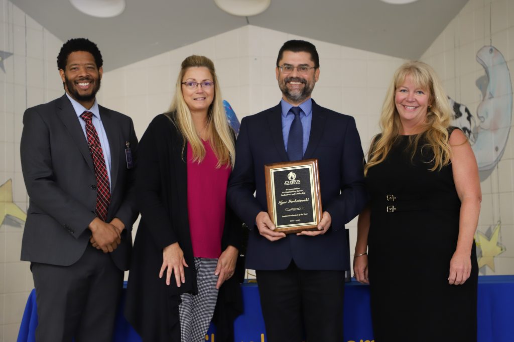 Hubbard and Gorbatovski were surprised with the recognition in front of their families and JCPS staff on Tuesday, Oct. 11. Hubbard was honored at a breakfast for JCPS principals and Gorbatovski was honored at his school.