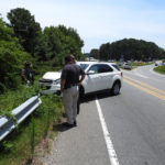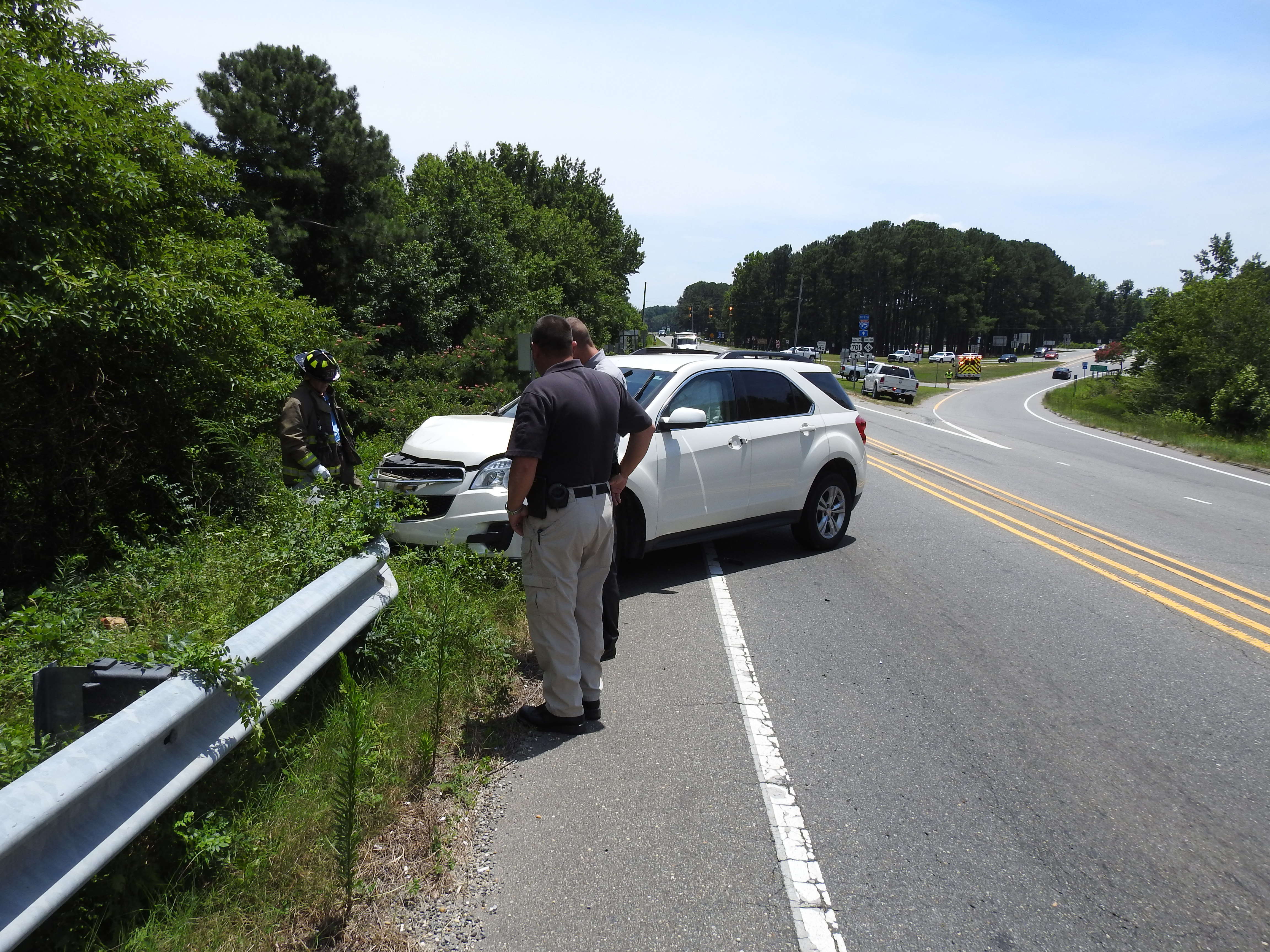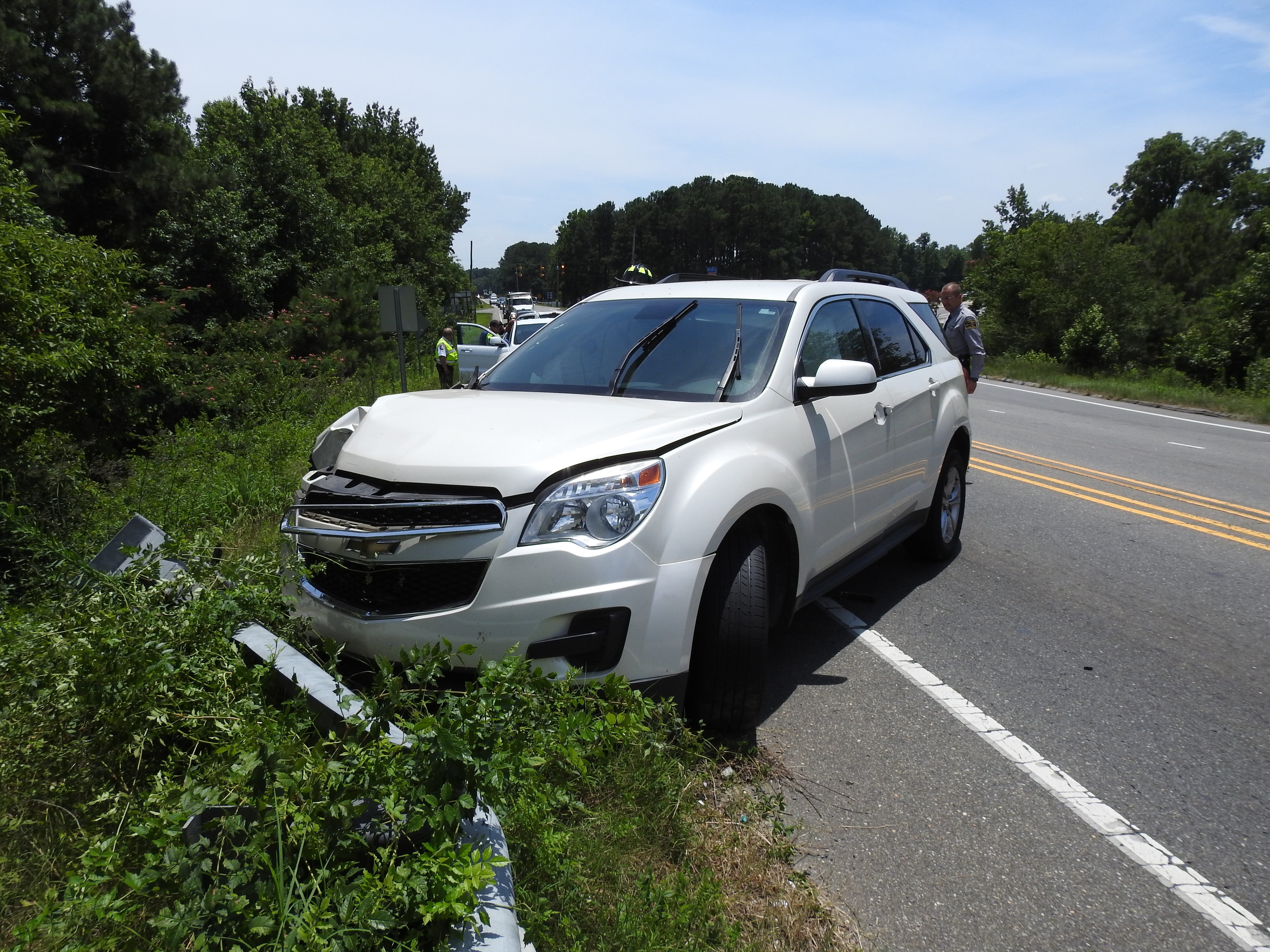 Around 1:35pm, a white Chevy SUV was traveling northbound on Highway 301 approaching a bridge over the railroad tracks when a tire on the vehicle began violently shaking. The driver, 75 year-old Dixie Barbour of Four Oaks, lost control of her SUV which slammed into the end of a guardrail. A witness reported seeing the SUV traveling straight then suddenly veer off the roadway and crash.
