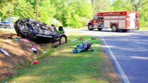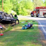 Trooper C.O. Best said the driver of a black Ford Explorer, 38 year-old Candice Jones Kye of Ocean Isle Beach, NC, was traveling north on Creech Church Road when she ran a stop sign at Highway 42. After running the stop sign, the Explorer struck a grey Chevy Impala traveling eastbound on Highway 42. After the impact the Explorer overturned in a ditch. The Impala came to rest in the highway.