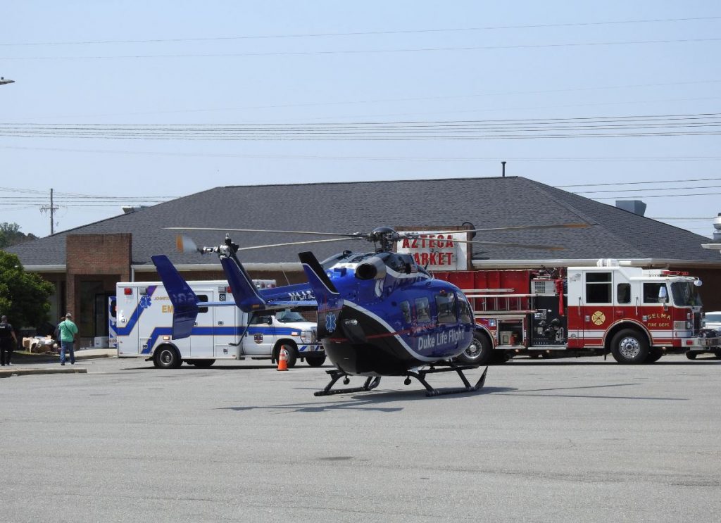 The Pine Level Fire Department responded to set up a landing zone in the parking lot. Johnston County EMS assisted with patient care.