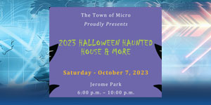 MICRO – The Town of Micro will be present a Halloween Event for the community on Saturday, October 7th from 6:00pm – 10:00pm at Jerome Park. The Halloween Haunted House…