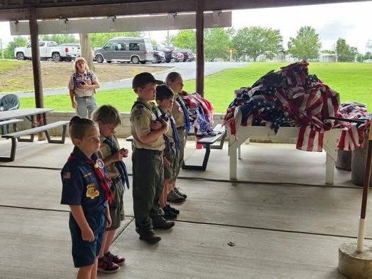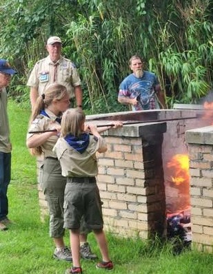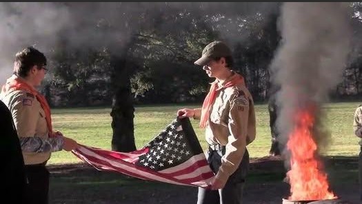 After roughly six months of collecting flags, Post 71 teams up with local Boy Scout troops—Troop 24 and Troop 124—to conduct a ceremonial flag retirement. During the most recent ceremony, over 500 flags were burned, creating such a large plume of smoke that a passing motorist called 911. Fortunately, the Post had already coordinated with the local fire department, and the event proceeded as planned.