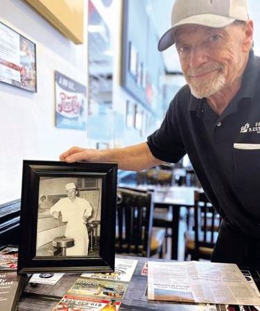 Ed King shares a photo of his father at Kings Drive-In on South Wilmington Street in Raleigh from ‘back in the day.” Daily Record Photo by Denise Galloway