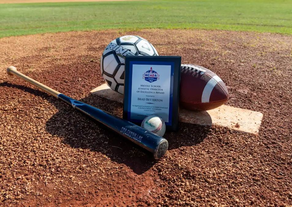 SMITHFIELD – Brad Betterton, Athletic Director at Archer Lodge Middle, recently received the inaugural Middle School Athletic Director of Excellence Award from the North Carolina Athletic Directors Association (NCADA). Betterton was recognized for his significant contributions at the middle school level in the field of athletic administration in North Carolina.
