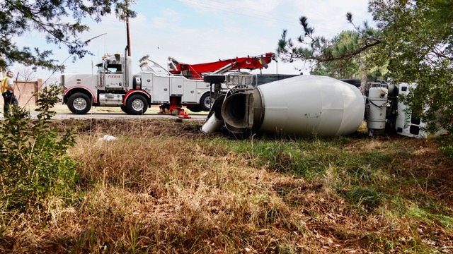 A concrete mixer overturned this afternoon (Saturday) on Buffalo Road in Archer Lodge. The truck ran off the right side of the pavement onto the soft shoulder and overturned. The…