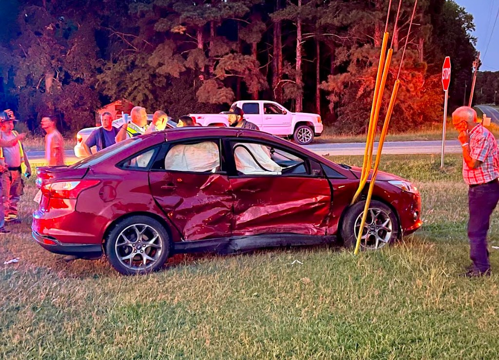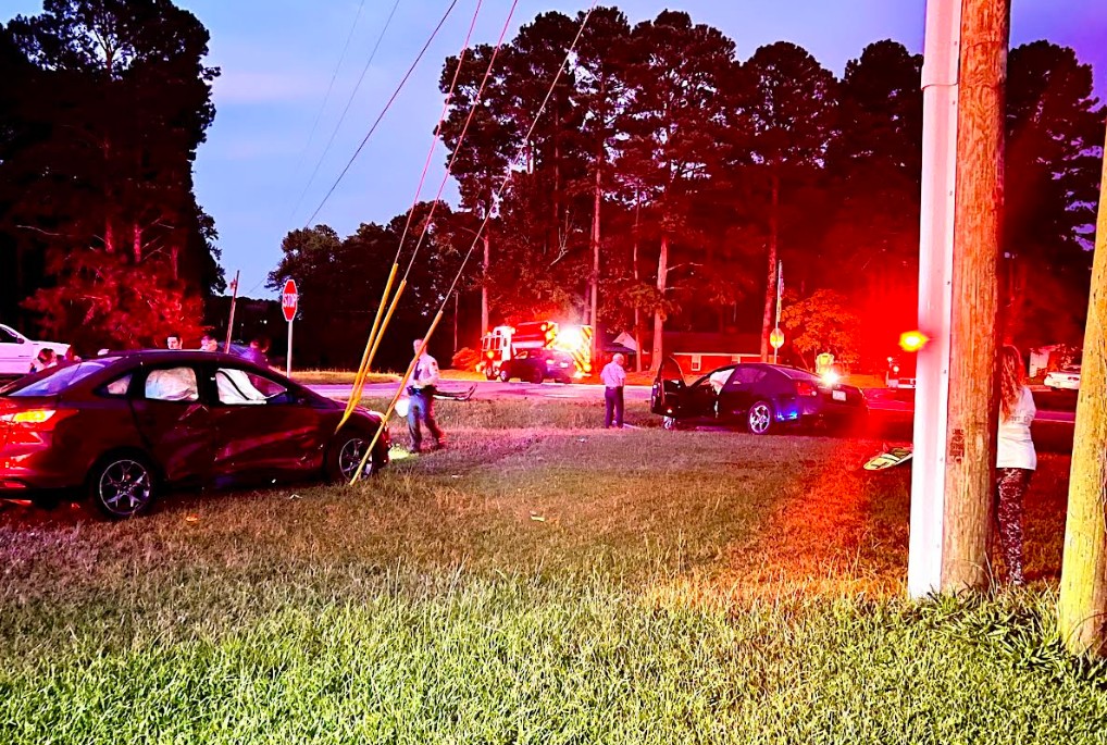 FOUR OAKS – A T-bone collision at a rural Johnston County intersection Thursday night led to a power outage and sent two people to the hospital.
