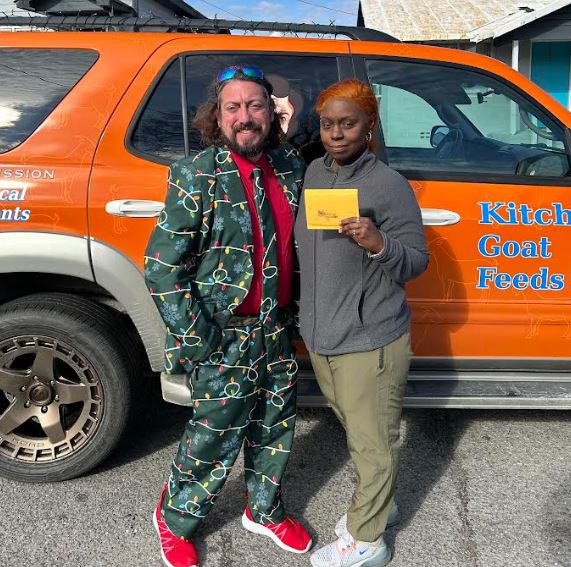 On December 18, Jason brought hope and smiles to Kenly, personally meeting with cancer patients to share his generosity and compassion. His journey to start this inspirational non-profit began with a simple yet life-changing moment. While visiting a hospital, Jason overheard a woman undergoing cancer treatment express her distress over having to choose between paying her medical bills or buying food. Moved by her dilemma, Jason took immediate action, establishing Kitchen Goat Feeds Corporation to help others facing similar struggles.