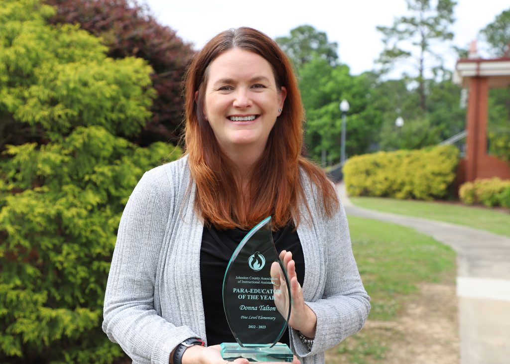 Talton received the award after an in-depth application process. As a member of the Johnston County Instructional Assistant Association for two years, she was required to submit a portfolio, and a resume. During the process Talton submitted her personal philosophy of education for a child. Her philosophy is, “When you cut it for me, write it for me, open it for me, set it up for me, draw it for me, or find it for me, all I learn is that you can do it better than me.”