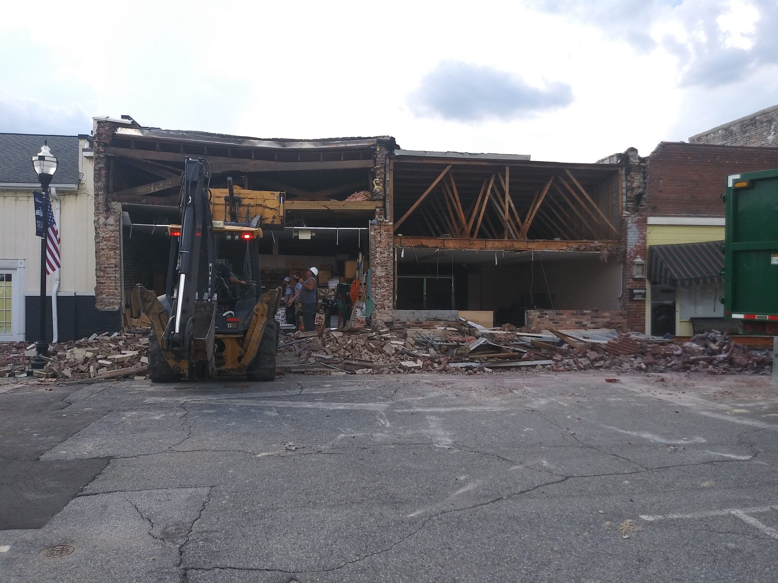 The Selma and Pine Level Fire Departments responded and stood by while the cleanup took place. Town of Selma crews used a backhoe to clear bricks, wood, and other debris from the roadway and sidewalk.