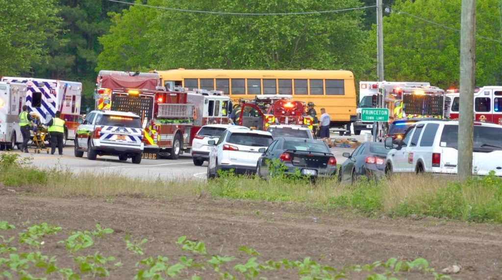 Approximately 50 students were on the bus. Several were treated at the scene for minor injuries. Seven others were transported to hospitals in Smithfield and Goldsboro for treatment.