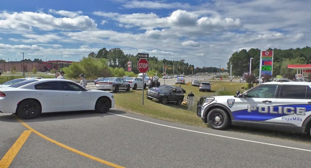 Law enforcement followed the suspect vehicle from mile marker 70 near the Harnett County line to mile marker 41 in Hope Mills, where the SUV exited the interstate and turned onto Chicken Foot Road in Hope Mills.