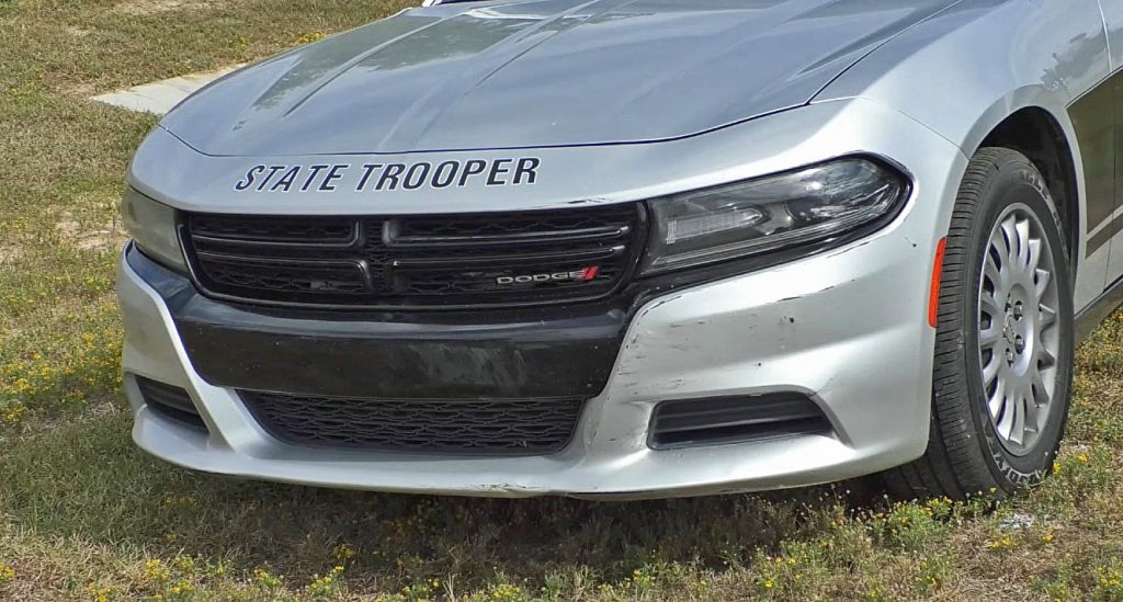 At the intersection of Chicken Foot Road and Marrocco Drive, a state trooper performed a PIT maneuver, forcing the BMW off the roadway. Two male occupants were immediately detained.