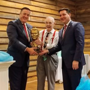 CLAYTON – Over 125 people attended the Johnston County Republican Party’s annual awards banquet at The Farm on Highway 42 in Clayton on Saturday, April 13th. Recently retired radio station owner and operator Carl Lamm received the GOP’s prestigious Ronald Wilson Reagan Legacy Award.