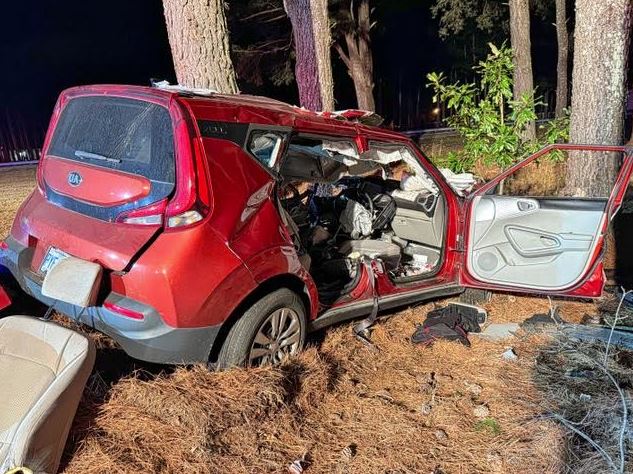 Prior to the trooper being able to overtake the Kia, the driver attempted to exit at Brogden Road. The Kia ran off the roadway to the left colliding with several trees.